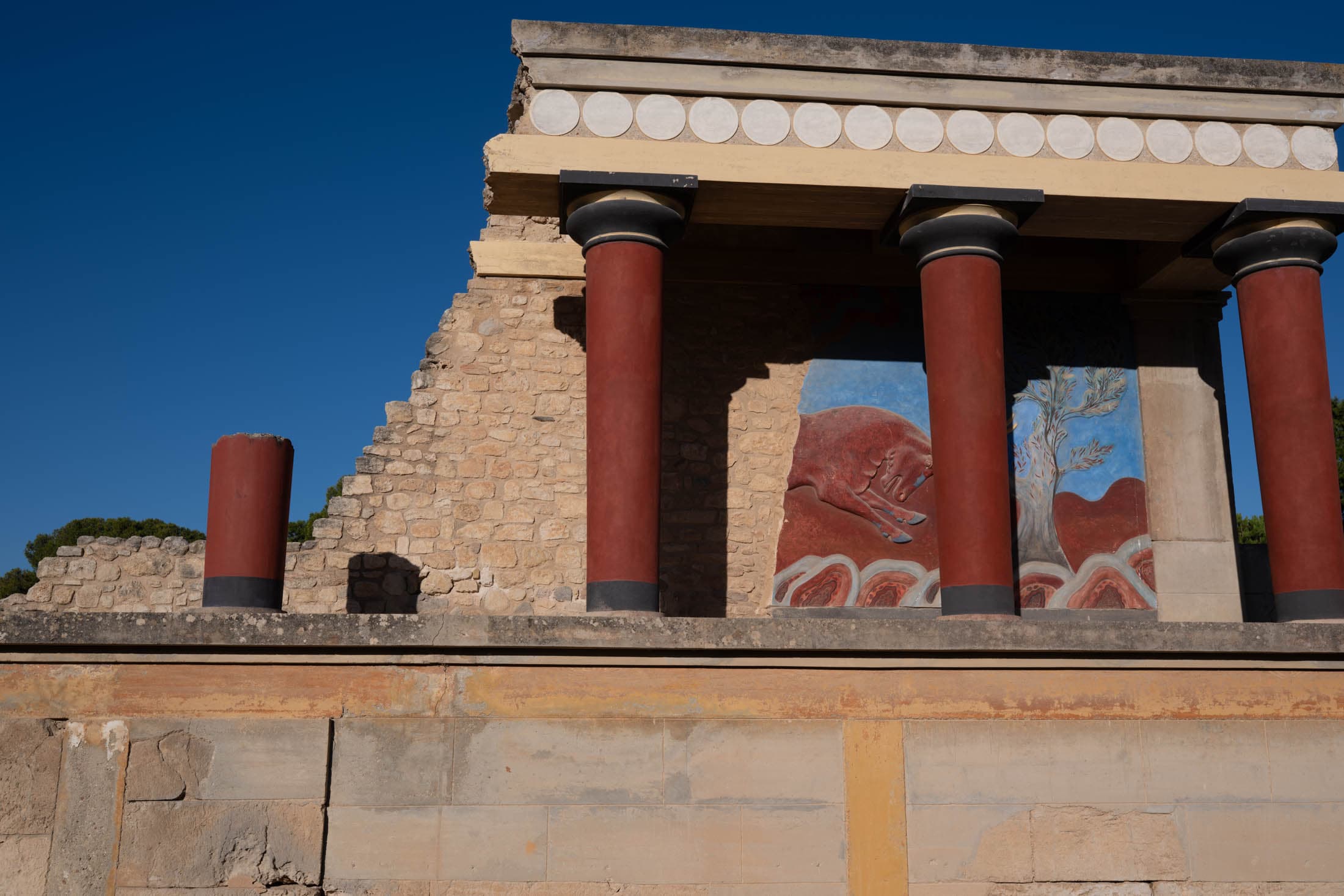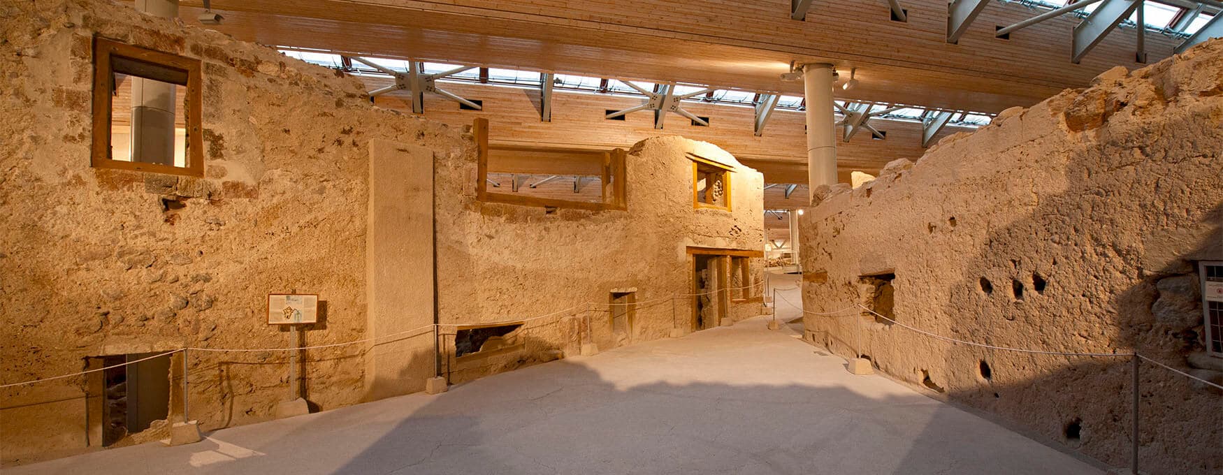 Porticoes (elongated roofed buildings with a colonnade along their long side, the façade) were built in public places of gathering, such as squares, markets, sanctuaries, theatres. In fact sanctuaries were worshippers' safe haven. An L-shaped portico, at the entrance of the Sanctuary, bordered the west and north side of the Roman Court reaching the Sacred Way.
